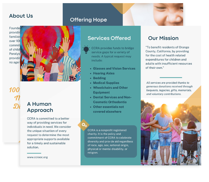 It is the policy and commitment of CCRA to celebrate diversity and provide aid regardless of race, age, sex, national origin, physical or mental disability, or religion.